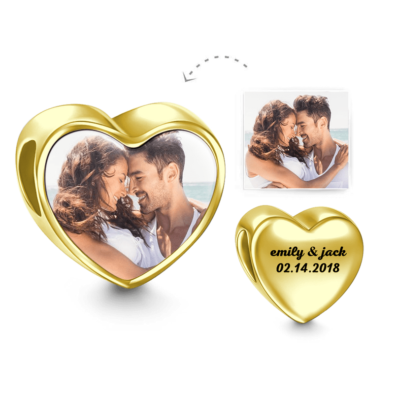 Keywords: Engraved charm, photo pendant, heart necklace, personalized jewelry, gold plated silver, custom photo charm, sentimental gift, keepsake necklace, photo memory charm, custom engraved pendant, heart-shaped charm, personalized pendant, gold plated charm