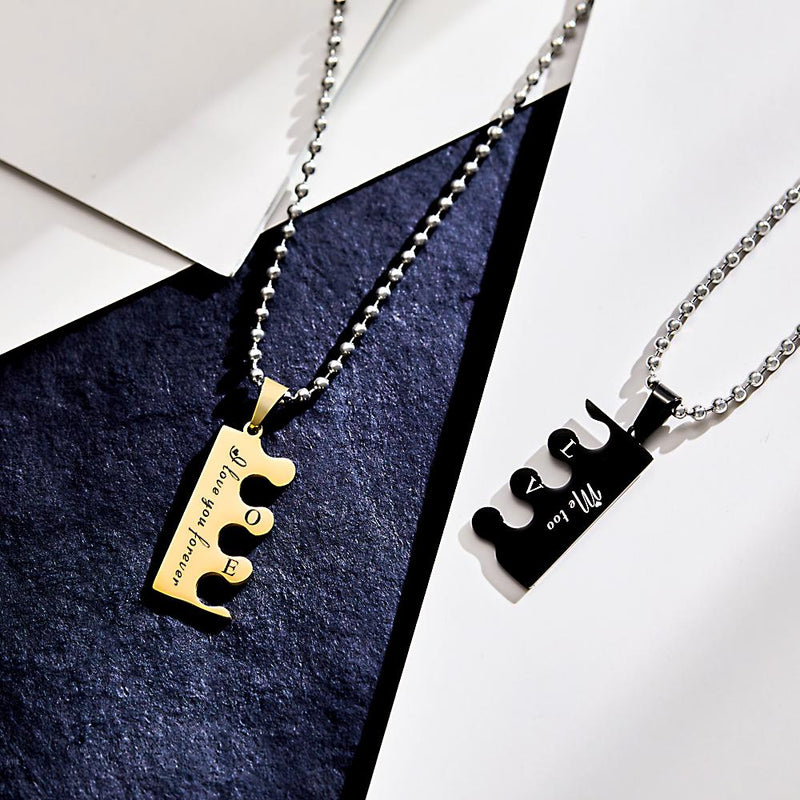 Matching Couple Jewelry is a modern and stylish way to express your love for each other. Tell the world that you're a couple with matching couple necklaces. Looking for ways to update your look? Then you have definitely come to the right place! Name Necklace has so many stunning pendant necklaces to choose from. There are great pieces for casual looks, glittering ones for formal ones, and even customizable ones for when you want to add a personalized accent to your overall look. Because pendant necklaces are so versatile, they make for lovely gifts that people will get a lot of wear out of. These pendant necklaces come in different metal colors and stone colors. There is everything from holiday necklaces and animal necklaces to star necklaces and floral necklaces. Those who love a bolder look should be sure to look at the lovely selection of layered pendant necklaces.