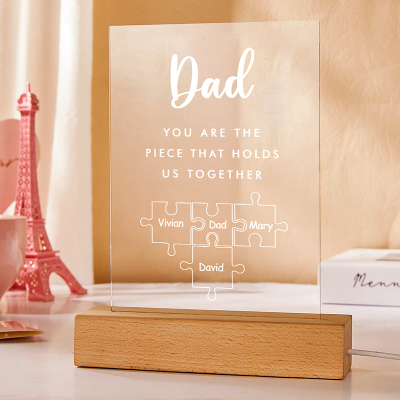This beautiful acrylic LED lamp is the best perfect gift for dad.Your photo is engraved onto a clear acrylic slide which slots into the LED light base. At the bottom of each base, there is a strip of LED lights that illuminate the slide and makes the engraved name glow. The wooden bases and frame are fitted with a single colour LED which gives off a warm glow and can be controlled by a dimmer switch on the power lead. The plastic base is fitted with multi-coloured LEDs and you can select a particular colour or set the base to cycle through each colour whilst it is switched on.The wooden LED bases and frame are powered by a 5V USB power source and come with a dimmer switch on the power lead. The Plastic multi-coloured LED base can be powered by 3x AA batteries or by a 5V USB power source.