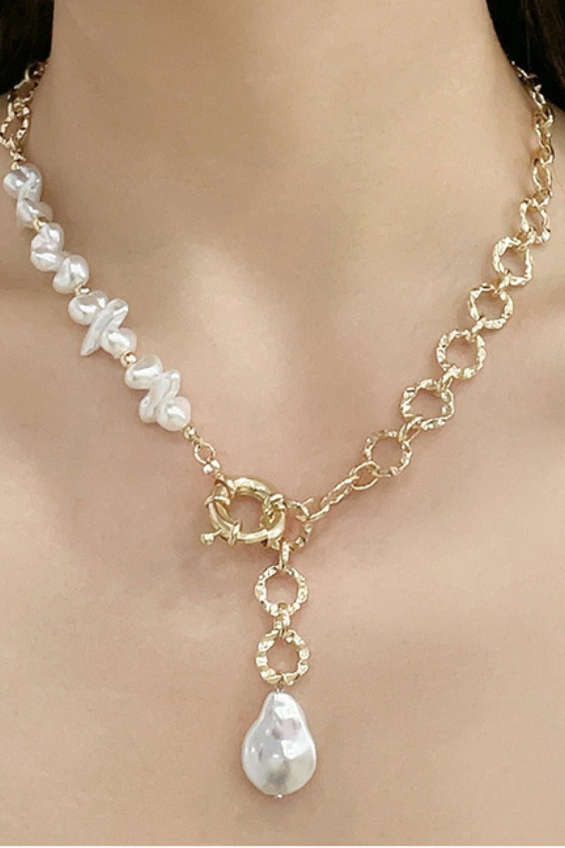While wearing the pearl necklace, avoid exposure to the sun and contact with highly volatile substances such as perfume and hairspray, as it will easily fade in color and lose its luster.