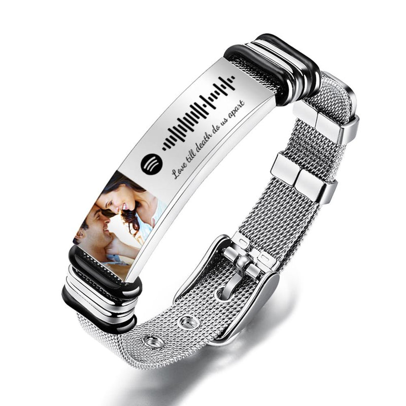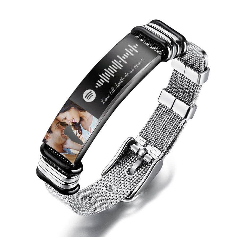 Gift for Him Photo Bracelet Spotify Code Bracelet Metal Bracelet Scannble Music Gift