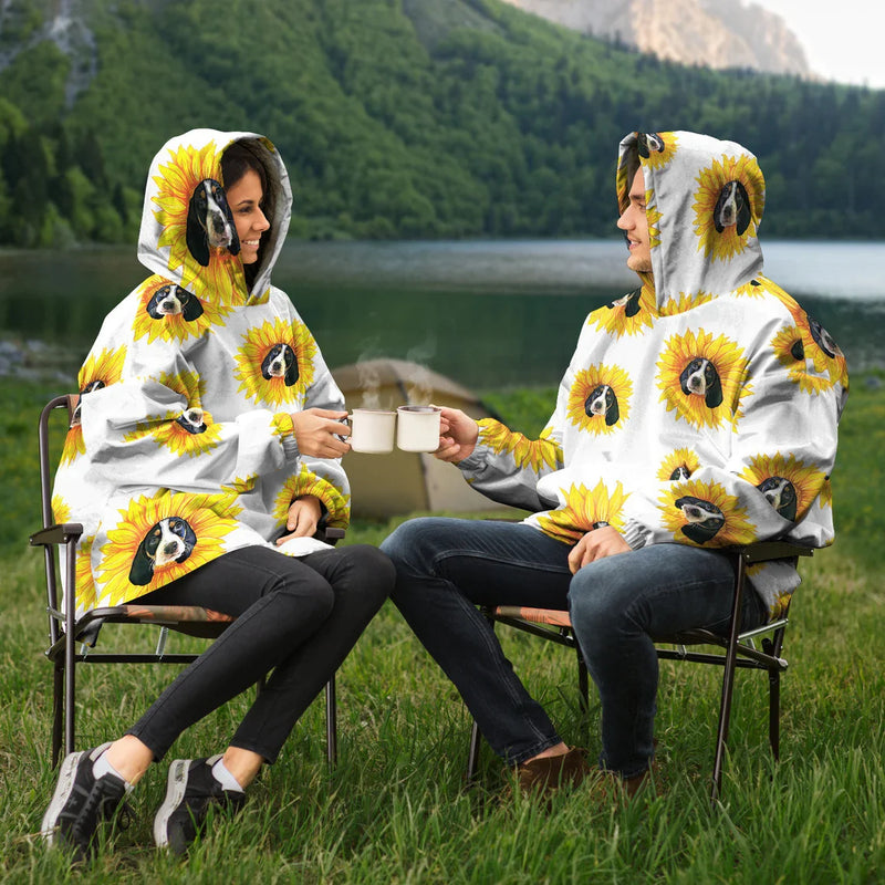 Made of polyester fabric, the Kuddles Hoodie Blanket was Carefully crafted from the best, most cuddly-soft, pet-friendly materials that are soft to the touch and comfortable to wear. With heat transfer technology, the colors are bright and clear, and the pattern won't fade over time. Choose from 6 stylish options, each personalized to your face 🧡