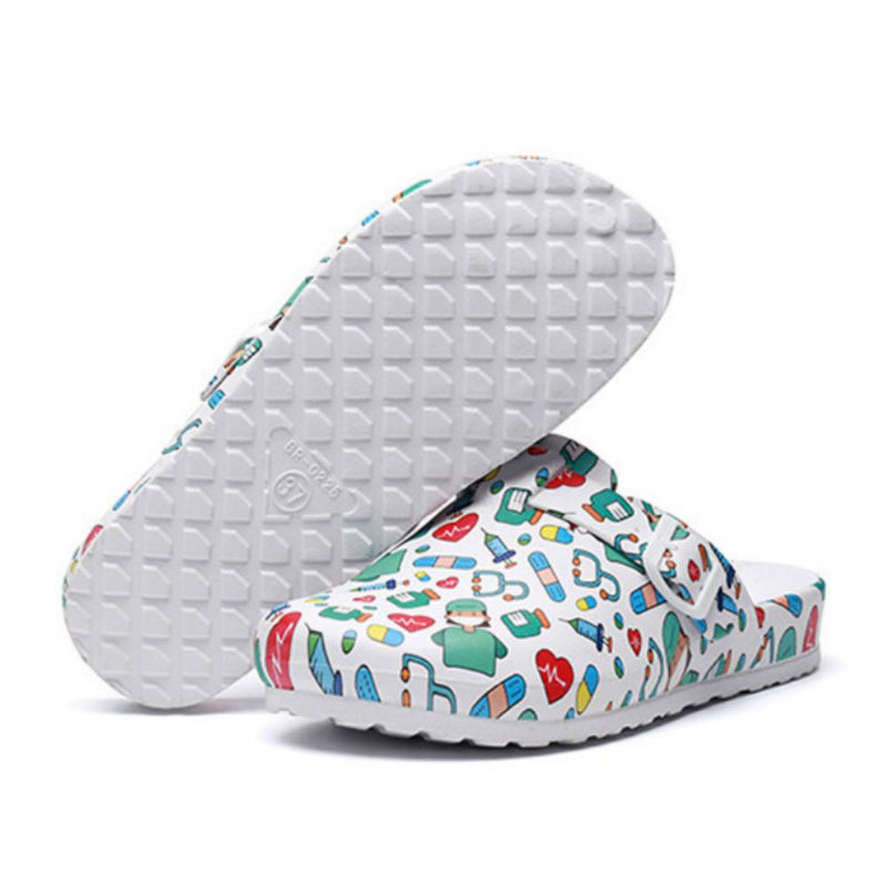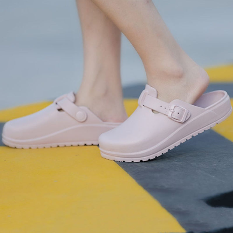 The slip on clogs has an adjustable buckle, which can adjust the tightness of the shoe. If the holes in the strap are not enough, you can use a hole puncher to make the holes you need to adjust.