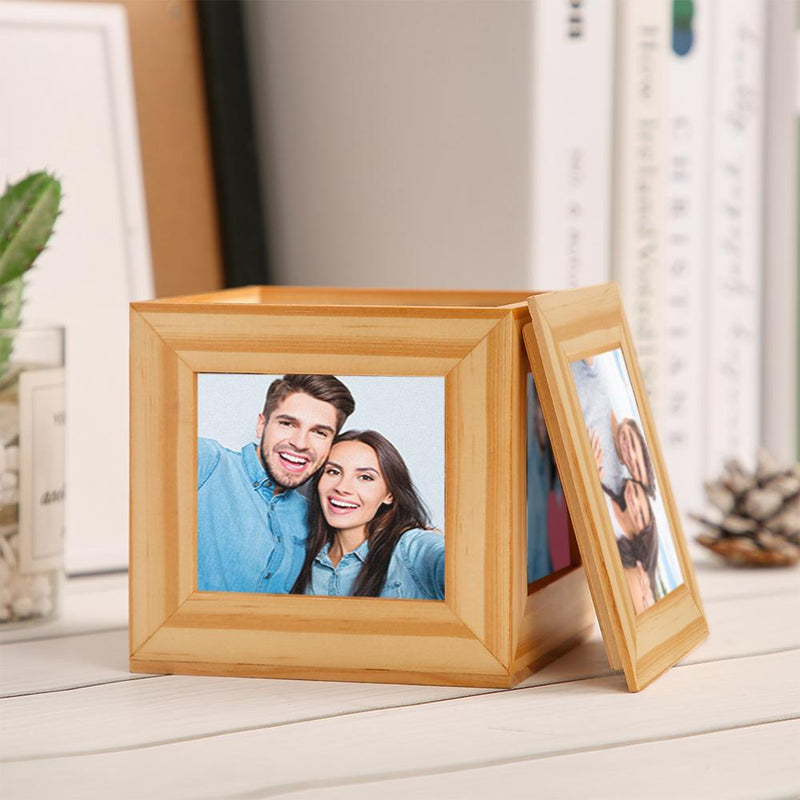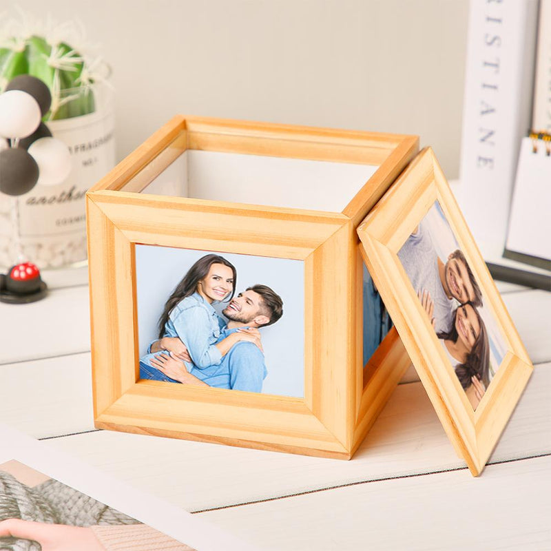 Our personalized oak photo cube souvenir box is a great way to showcase your special memories. Photo Cube Add special information for thoughtful gifts. There is room for you to choose 5 photos. The box has a separate part from the rest for easy access to the inside box, and the photos are easy to change. At the same time, you can also put items of commemorative value in the commemorative box. Your souvenir box will be professionally hand-carved and is the perfect souvenir for newborns or newlyweds.