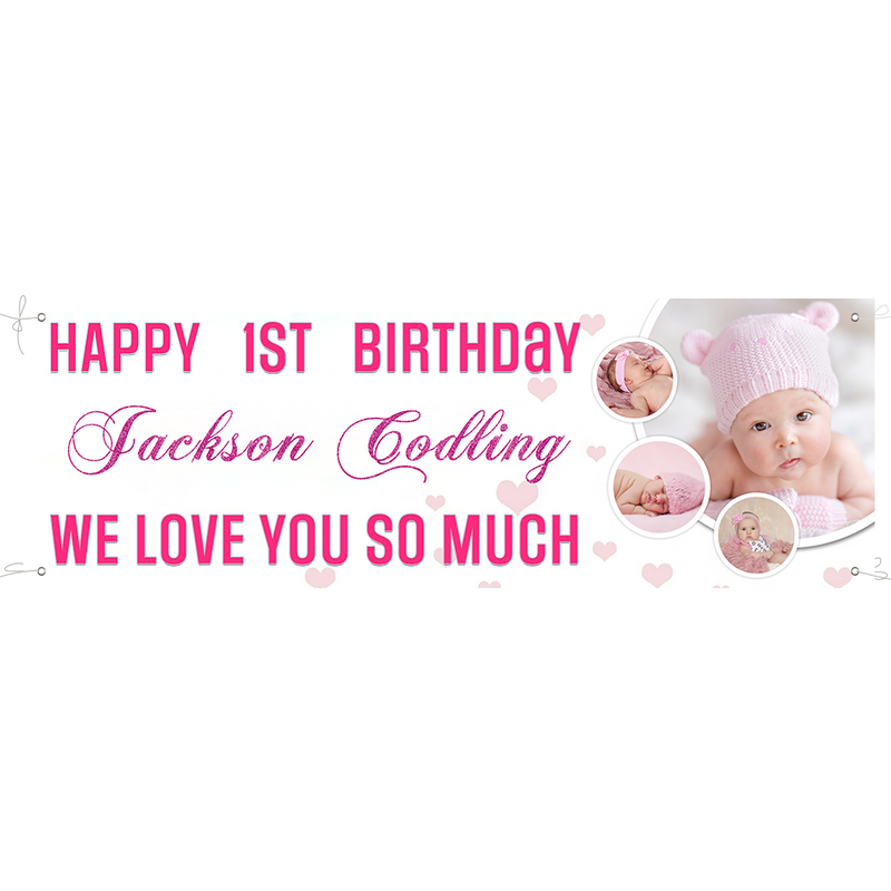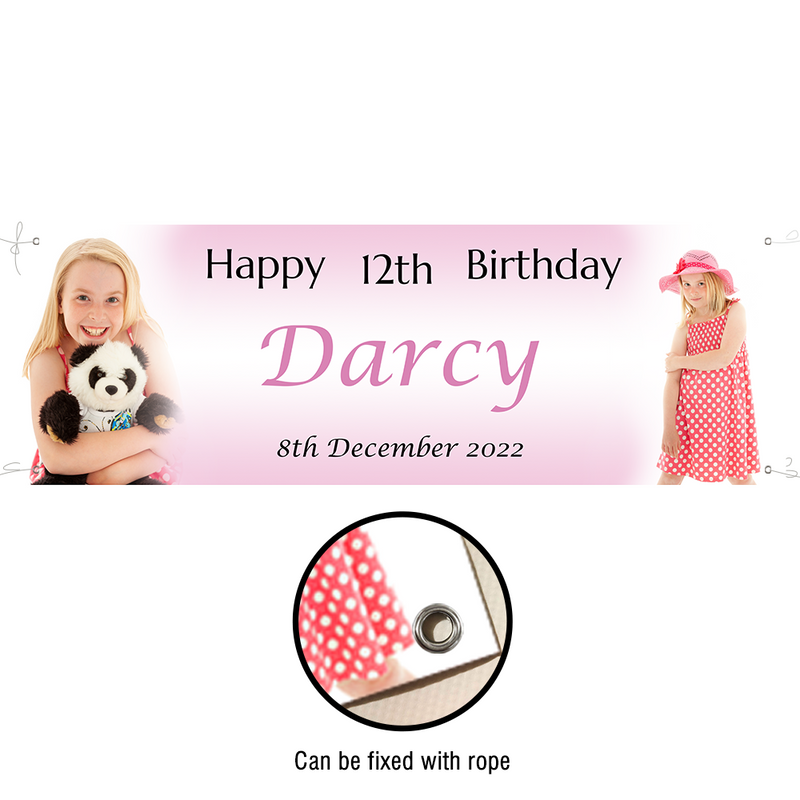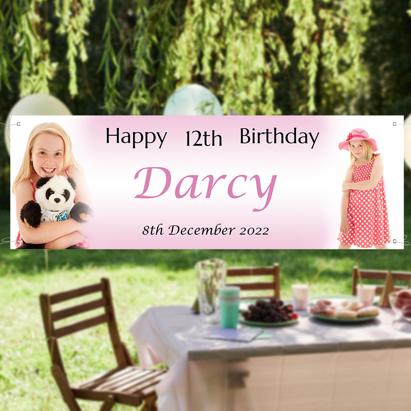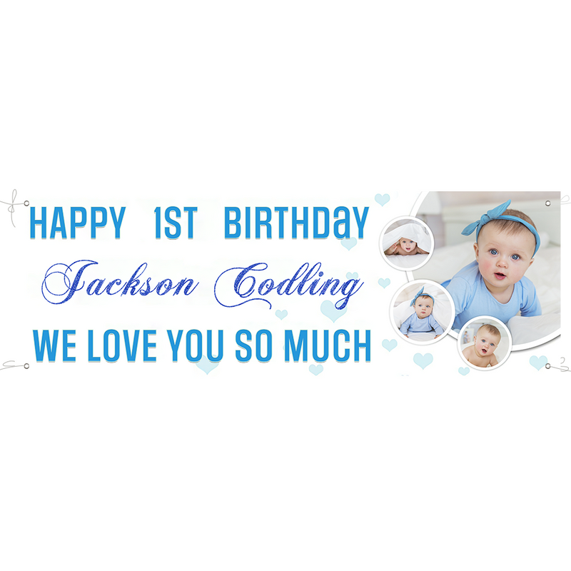 A custom birthday banner is the perfect way to make your loved one's special day even more memorable! Made with high-quality fabric and heat transfer technology, this banner is long-lasting and able to withstand any indoor or outdoor celebration. Personalize it with your text and photo, choosing from a variety of styles to suit the occasion. Add a personal touch to your celebrations with our custom birthday banner.