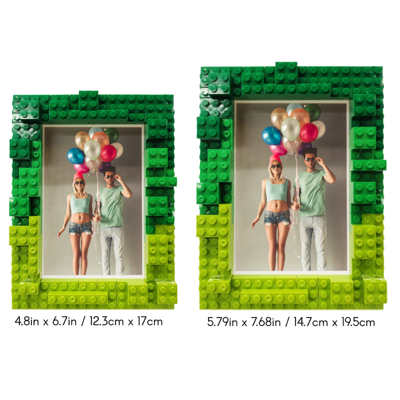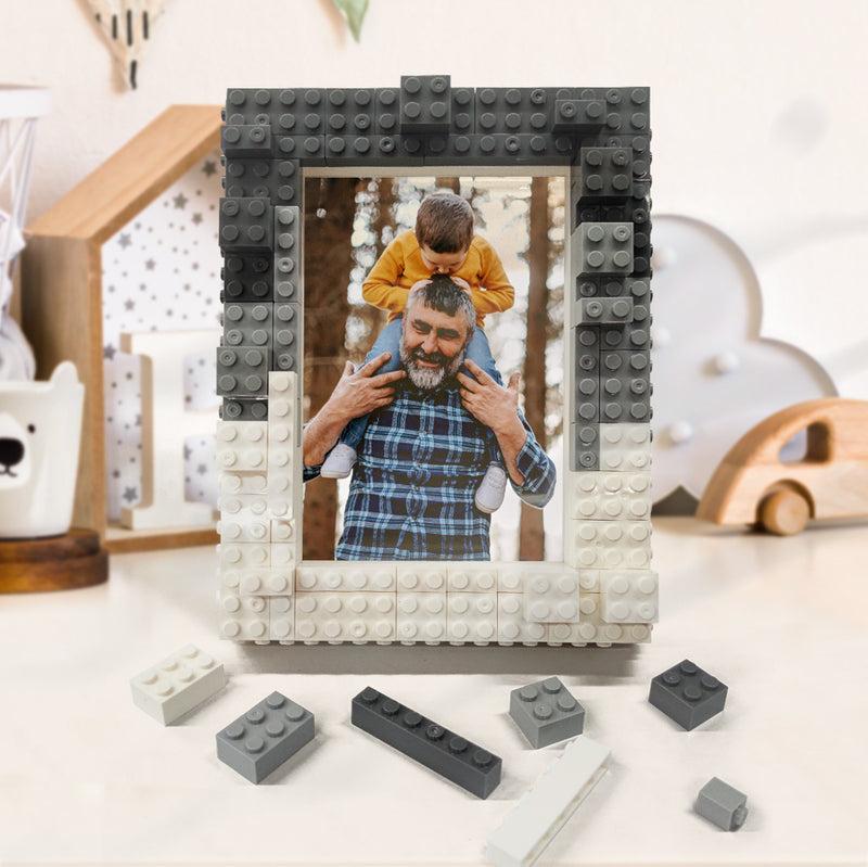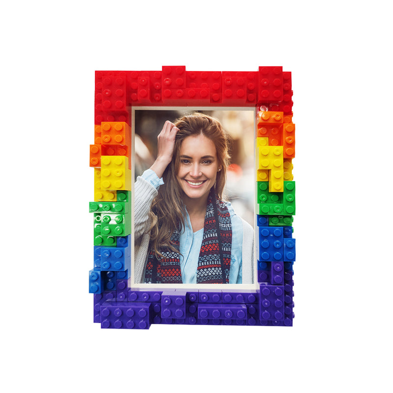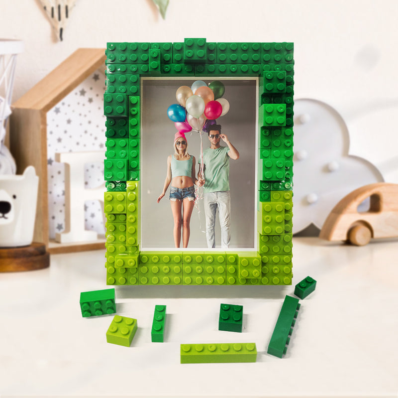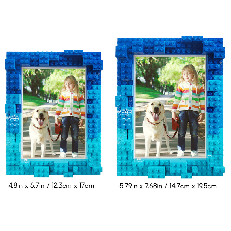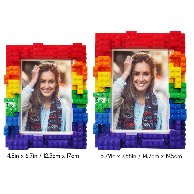 This building brick photo frame is perfect for all occasions! It is made of ABS and coated paper and is available in 5 colors and 2 sizes. The gradient frame design is beautiful and unique. You can also customize your photo to make it even more special.