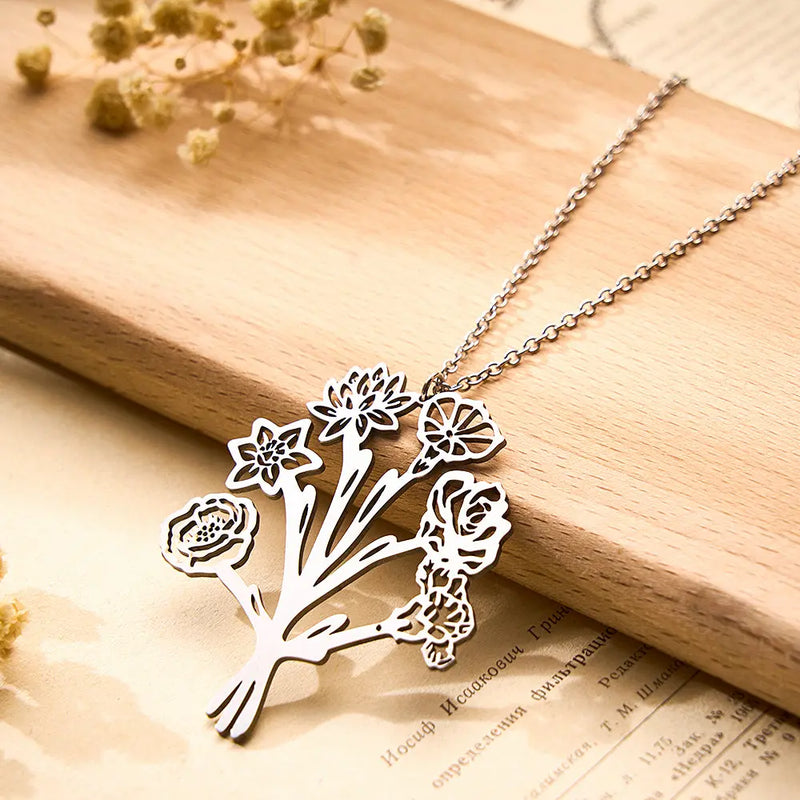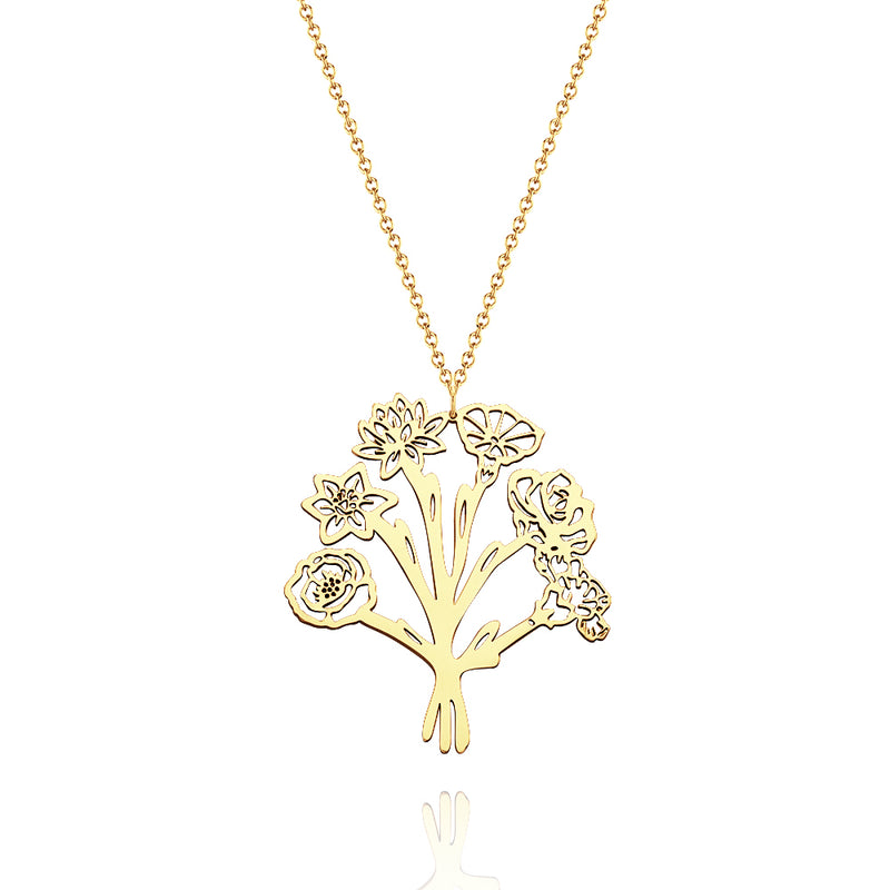 The Personalized Combined Birth Flower Bouquet Necklace Gift for Mom is a thoughtful and unique way to show your love and appreciation. The necklace features a bouquet of birth month flowers, customized with your family member's birth flower. Made with high-quality materials, this gift is a beautiful representation of your bond.