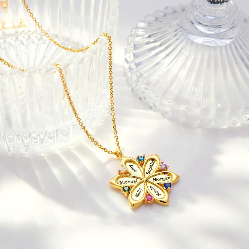 Personalized Name Flower Necklace Elegant Birthstone Pendant Necklace Jewelry Mother's Day Gifts