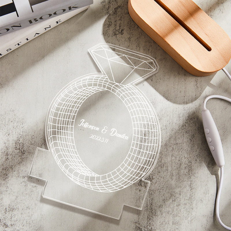 Personalized Text Diamond Ring Colorful Lamp Custom Acrylic 3D Printed Night Light Proposal Anniversary Day Gift