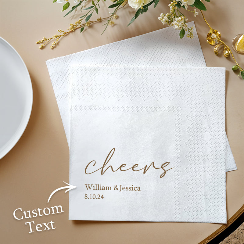 Enhance your special day with our personalized napkins. Perfect for weddings, cocktail parties, and rehearsal dinners, they add a personal touch to any occasion. Made with high-quality materials, our napkins are customizable and elegant. Elevate your event with these personalized wedding napkins, cocktail napkins, and rehearsal dinner napkins.