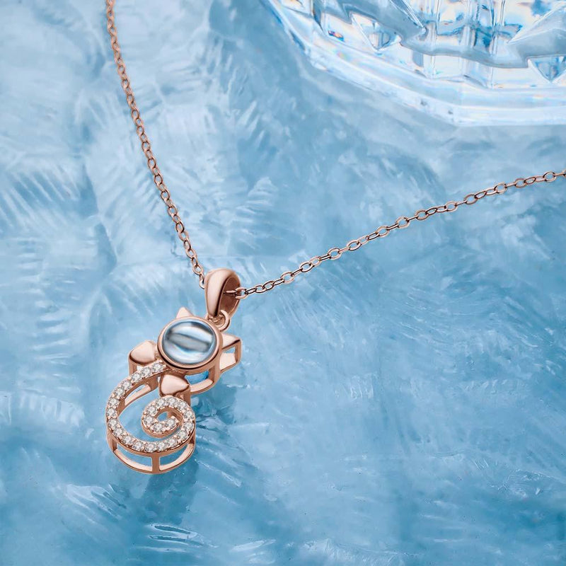 Shine a light through the crystal and the necklace will project a 3D projection of the portrait inside on any surface ✨