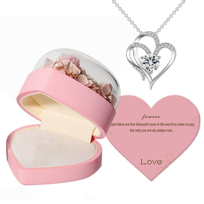 This elegant rose jewelry box is the perfect gift for her on Valentine's Day. Featuring delicate everlasting roses, the heart-shaped jewelry box is a beautiful addition to any jewelry collection. Show your love with this thoughtful and romantic gift.
