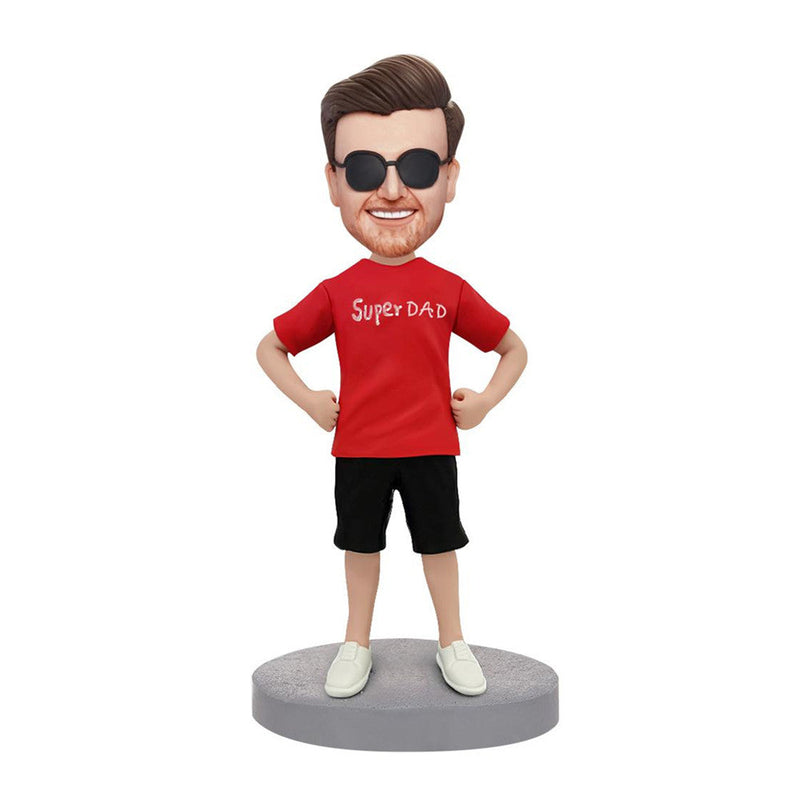 Super Dad With Casual Wear Custom Bobbleheads With Engraved Text