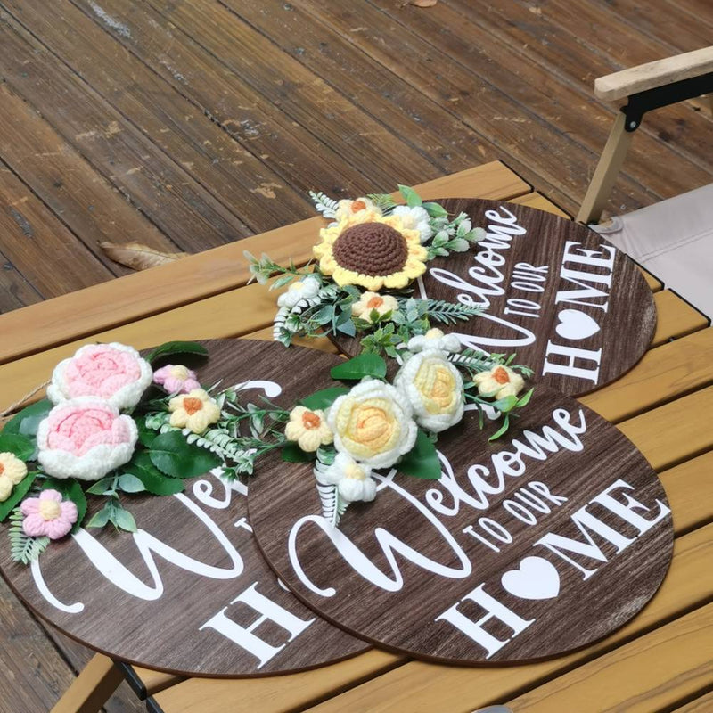 This Welcome Door Sign is the perfect way to welcome guests. Crafted with a crocheted flower, this unique door decoration offers a vibrant, personalized touch. Best home door sign decor gift.